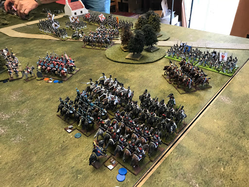 So a nice big game fought over about 4 hours play. The French guns proved pretty ineffective but the cavalry were able t0 hold in the west and force the Allies into a narrow attack that did not make the best of their numbers.