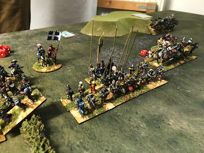 I was able to manoeuvre a couple of units onto the onto the exposed Saxon left. As they repositioned it was clear that capturing the town against such a numerous would be pretty tough - so time for a gamble. By extending their lines the Saxon warlord was left alone so I launched the berserks into him loaded with Saga abilities. They smite'd him mightily and the Saxon defence collapsed. 1-1.