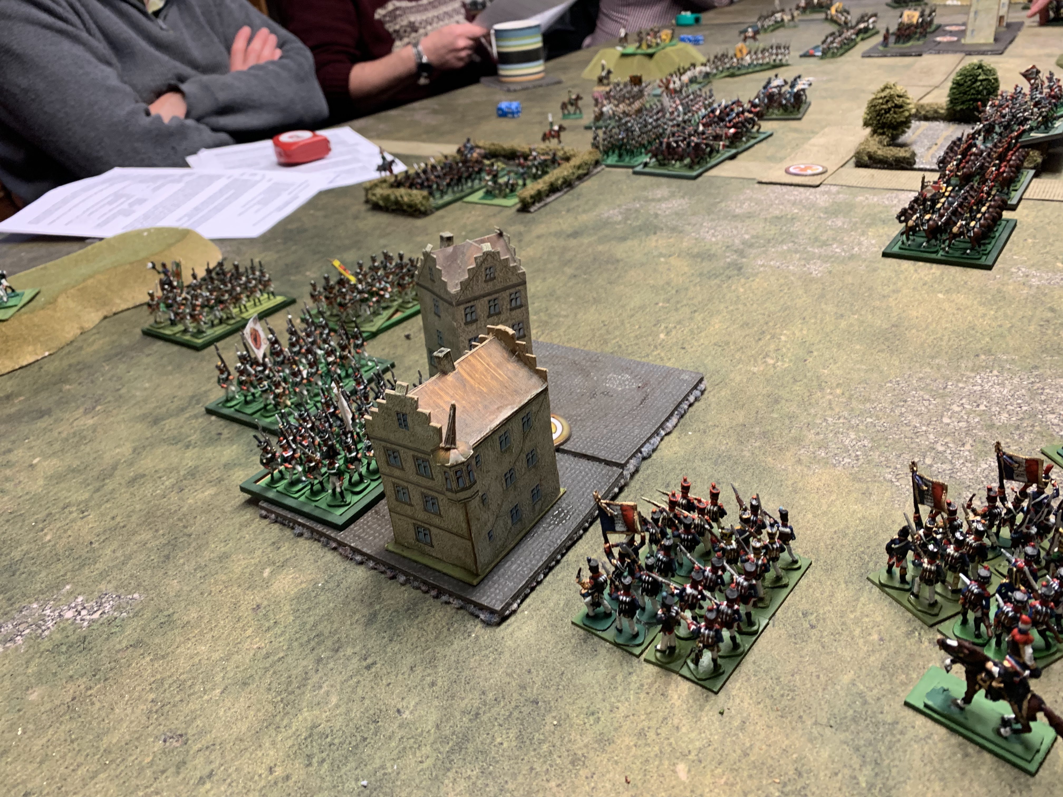 The game ended with each side holding an objective and two contested so a Draw. The French probably had the stronger forces left but has been unable to rapidly take Funsig and exploit the flank attack.