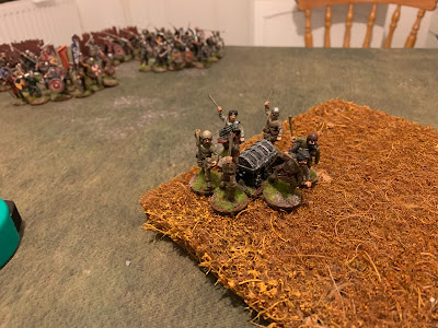 The Frankish archers were able to drive off their opposite numbers and attacked one of the Roman spear units. The game ended a draw.