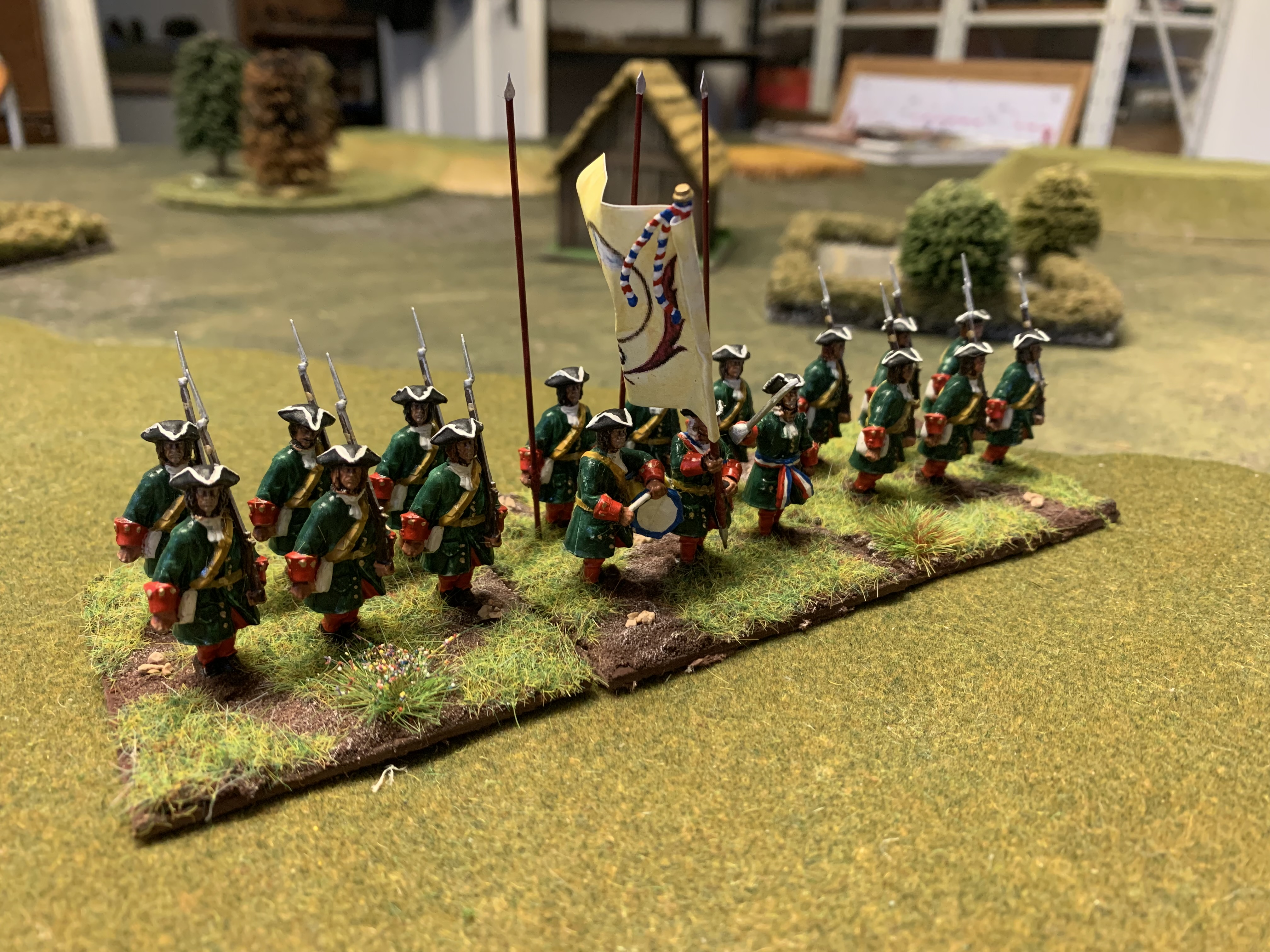With the completion a month ago of the Swedes I've made a start on the Russians. The first unit is one of what I think will be quite a few line units. I've gone for the traditional green/red used by quite a few units. the other popular scheme was blue/red which might feature in future.